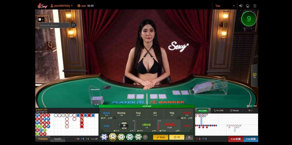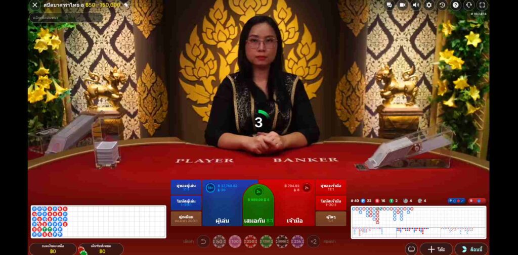เมื่อเข้าห้องแล้ว ให้เลือกชิปที่คุณต้องการเดิมพัน และคลิกลงบนตำแหน่งที่ต้องการเลือก ได้แก่